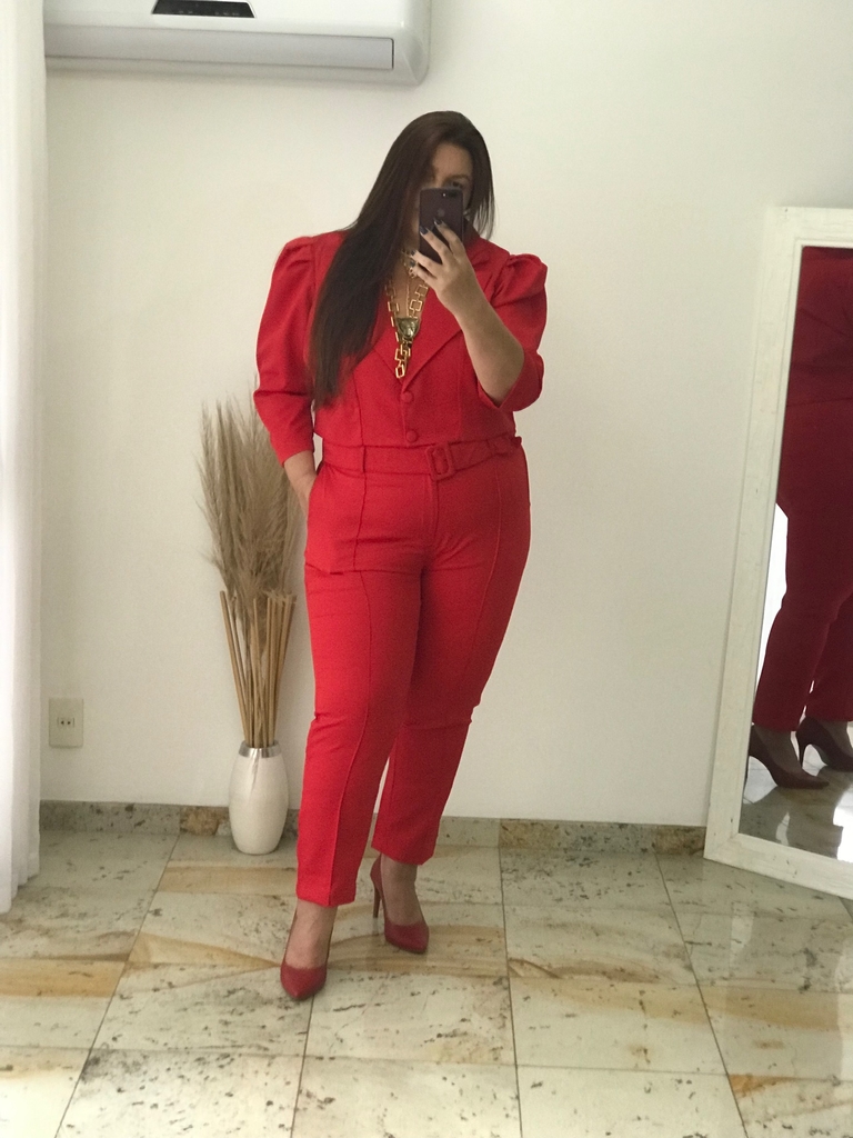 A calça com vinco e bolso faca, além de acompanhar um cinto no mesmo tecido, garante um visual harmonioso. Disponível nos tamanhos 46 e 48, ideal para realçar suas curvas com estilo. Não perca a chance de brilhar!